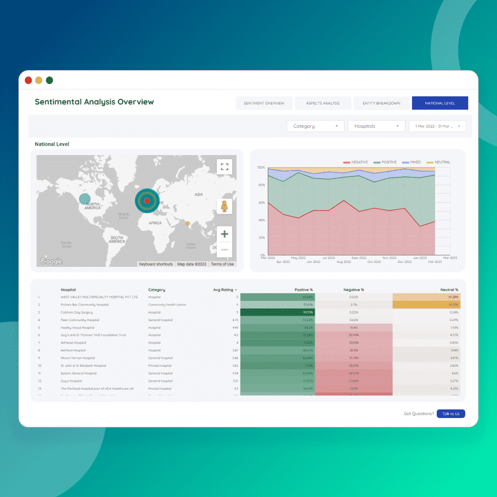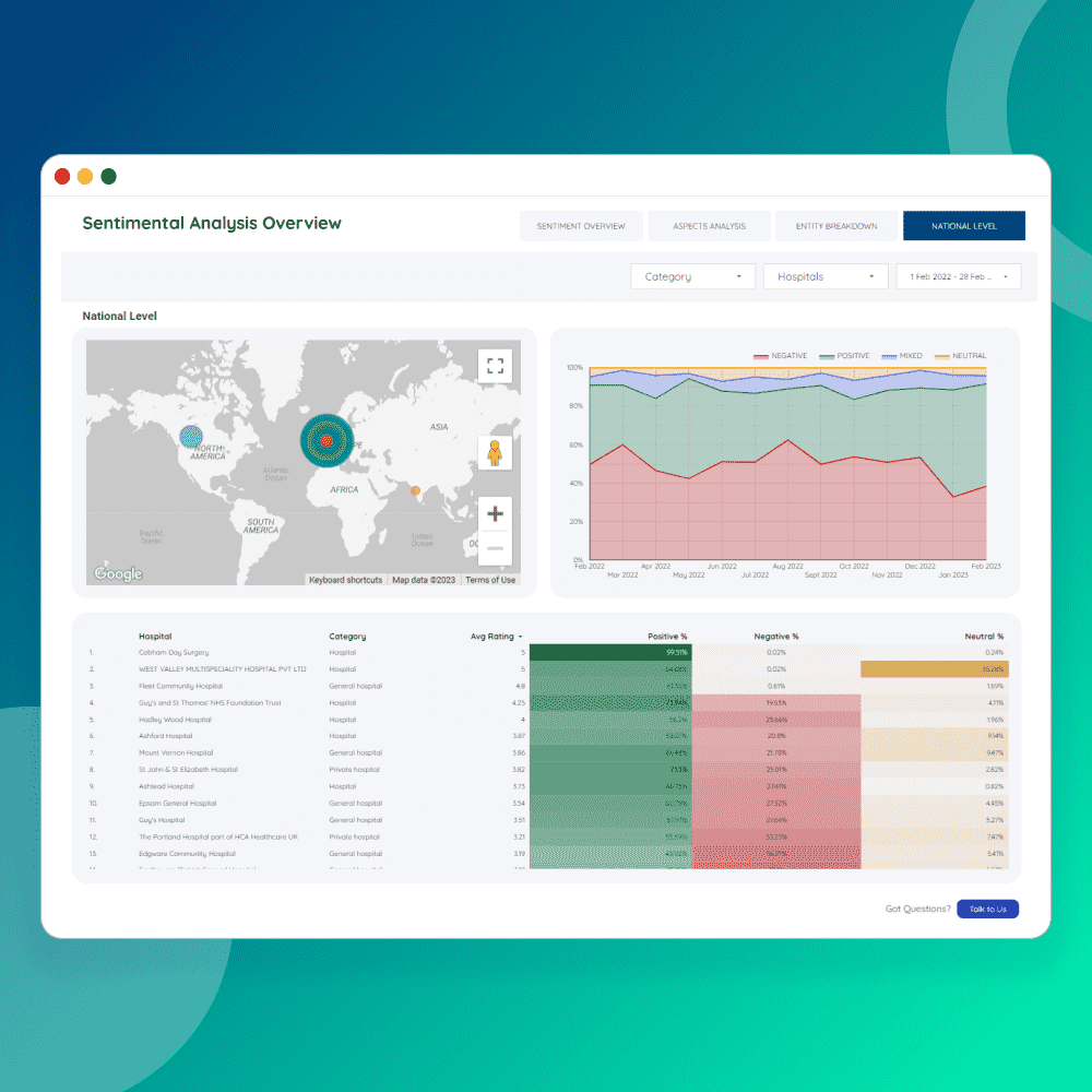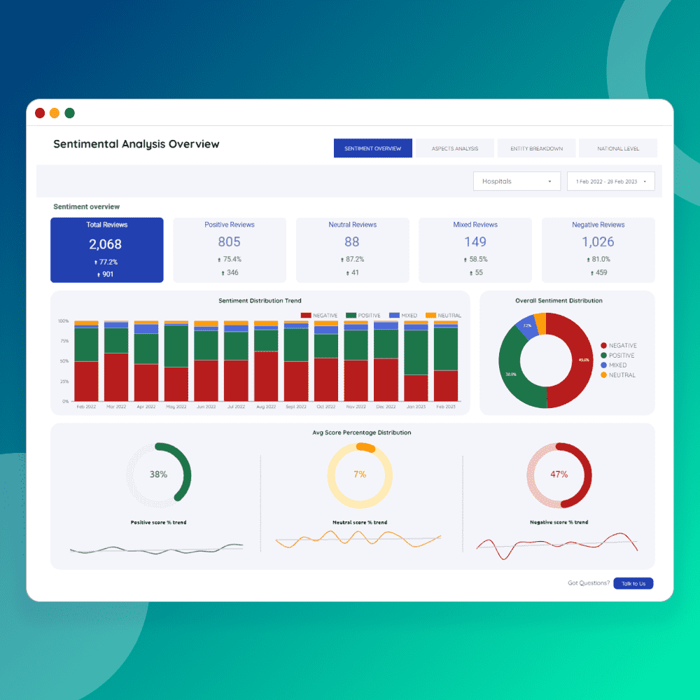 - Get a bird's-eye view of customer sentiment across multiple platforms.