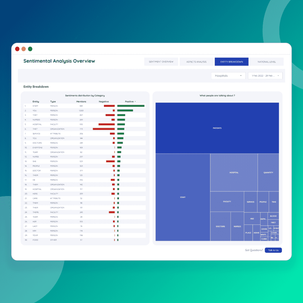 - Evaluate sentiment and frequency associated with each entity.