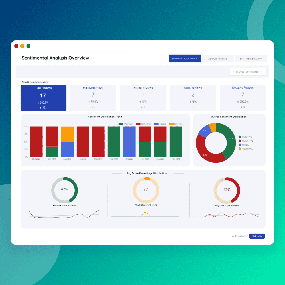 - Get a bird's-eye view of customer sentiment across multiple platforms.