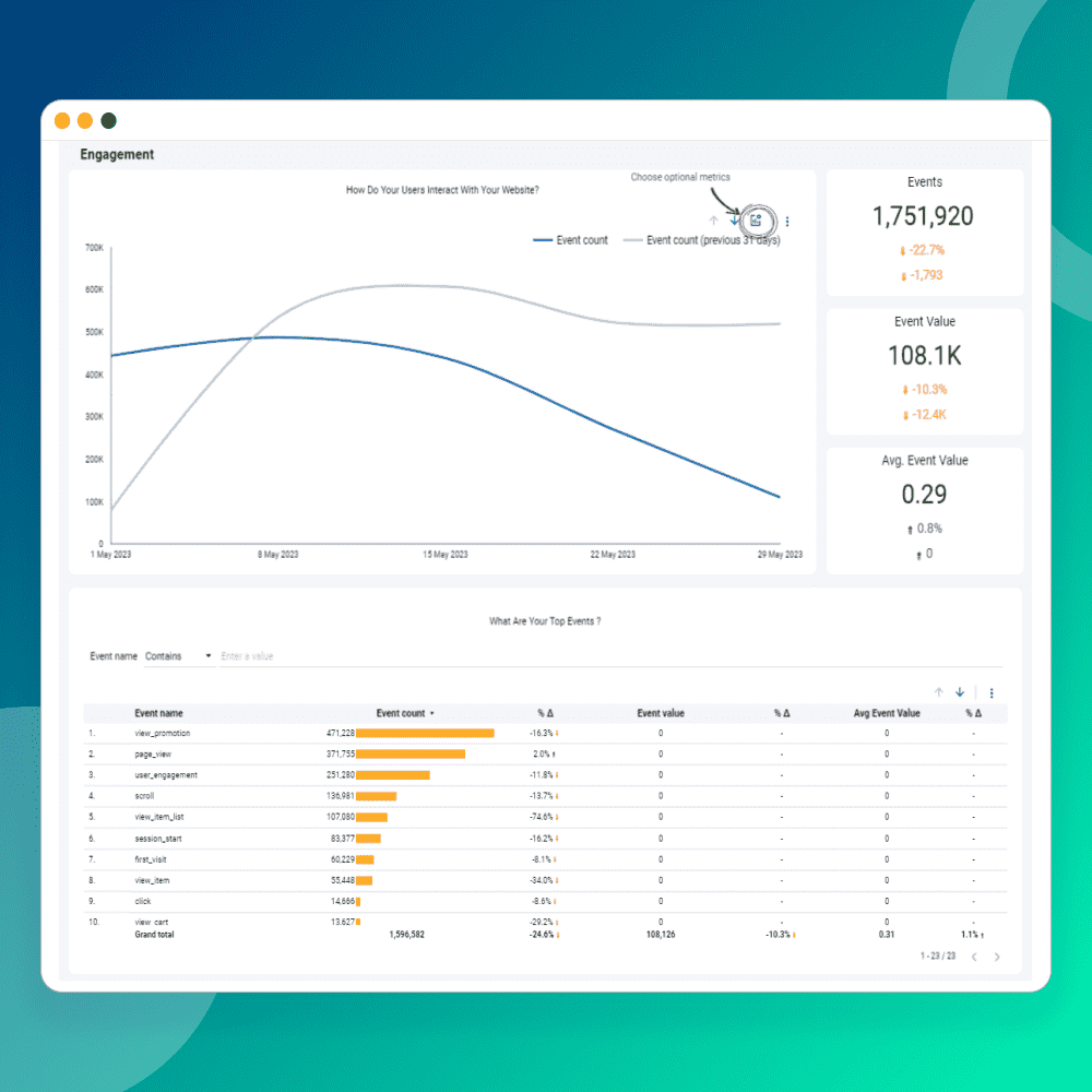 - Engagement Tracking: Explore crucial engagement metrics, including session duration, bounce rates, and interaction rates. These insights provide valuable information about user behavior, guiding you in making the right decisions to enhance engagement.
