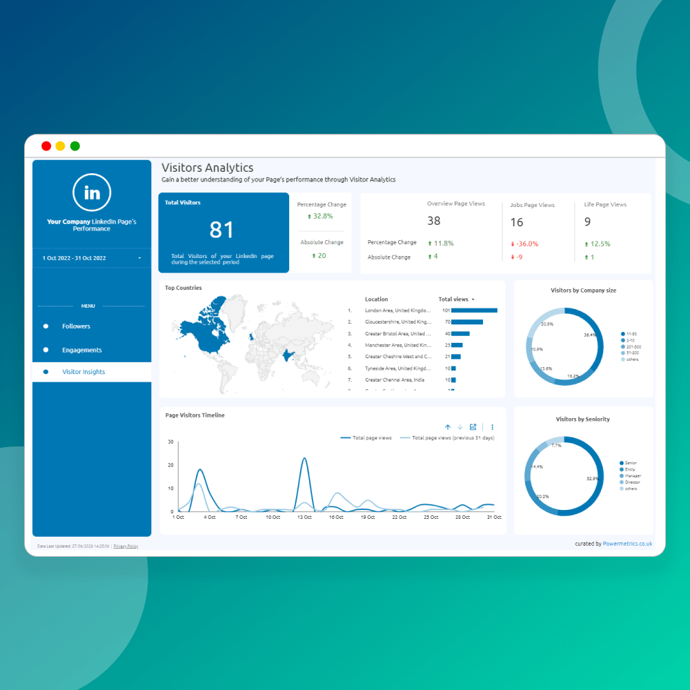 - Visitor Analytics: Understand your page visitors, their demographics, and engagement patterns to convert them into followers, leads, and valuable connections.